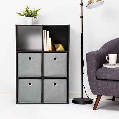 Stack away the extras out of sight in this 4-Pack of 11-Inch Fabric Bins Bundle from Room Essentials™. Designed in a cube shape, this four pack of fabric bins easily fits in a cube shelf to help you save space and stay organized while storing your craft supplies, extra light bulbs, or other odds and ends. The round cutouts with silver-tone accents make the bins easy to pull out from the shelf. Lightweight and simple, this gray fabric bin bundle lends a sophisticated touch to your space. You can also place cube fabric bins throughout your home for pop-up storage, including on your desktop for office supplies or near your sofa to stash remotes and more.